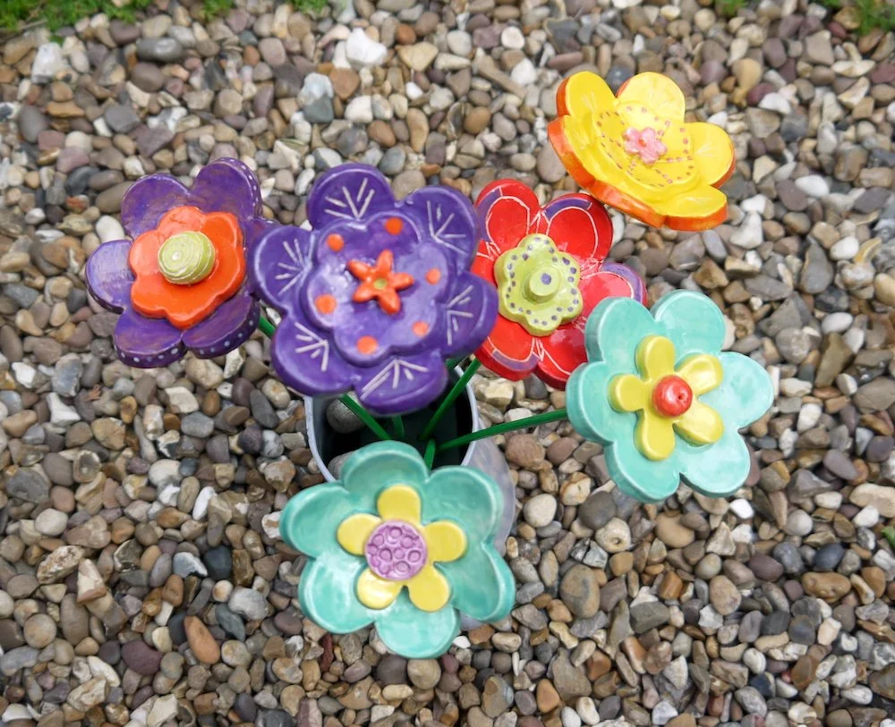 These ceramic garden flowers sway in the breeze and can add a new dimension to any plant. If you would like a particular colour, please ask. The price is per individual flower.